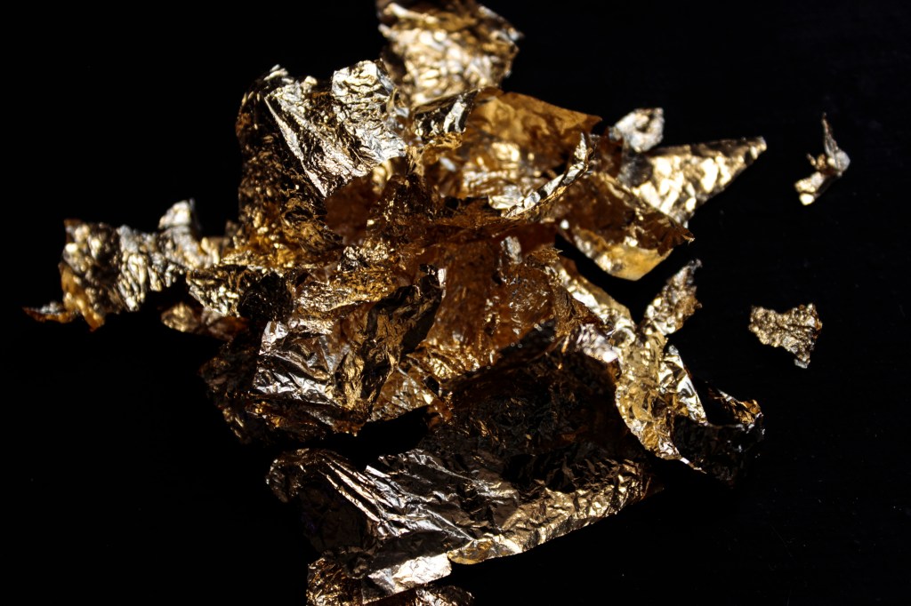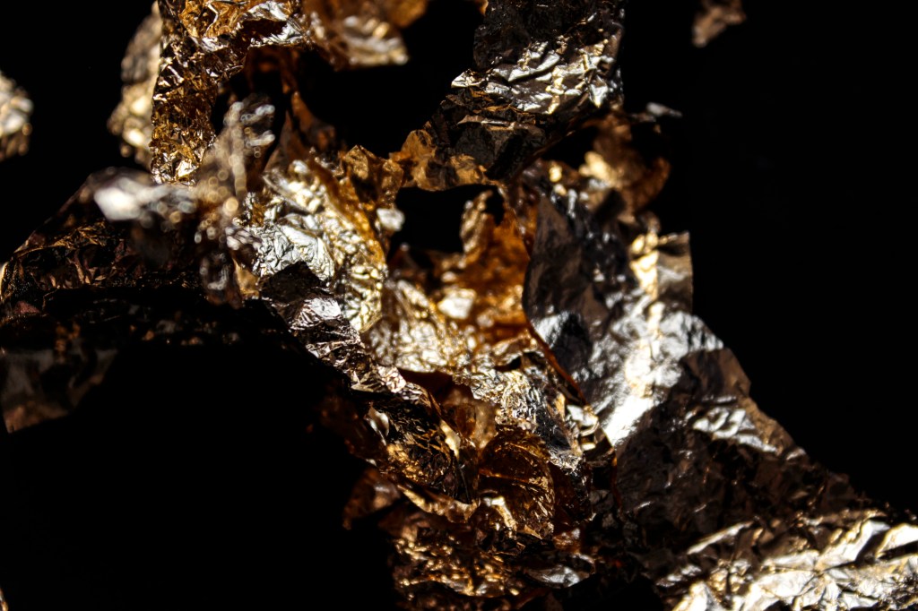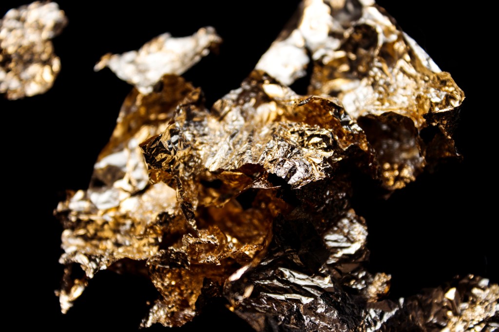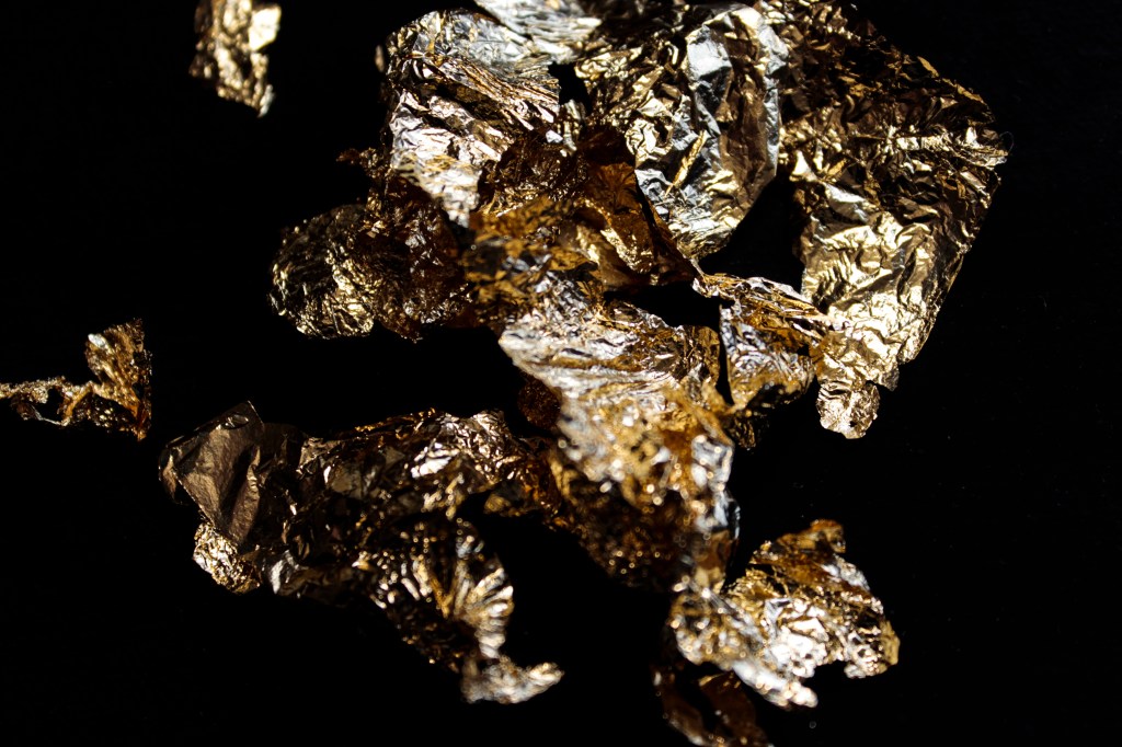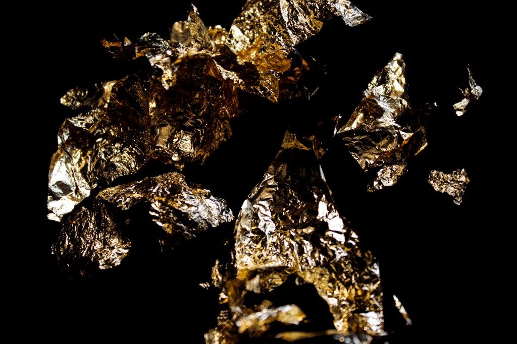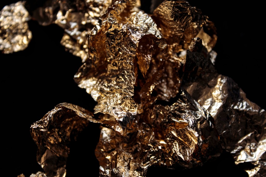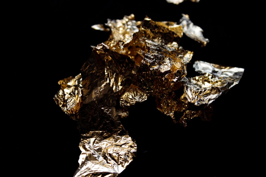 A series of photographs inspired by scientist Ernest Rutherford’s experiment pointing alpha beams at gold foil to detect alpha waves bouncing back from the nucleus of the gold atom to their source.