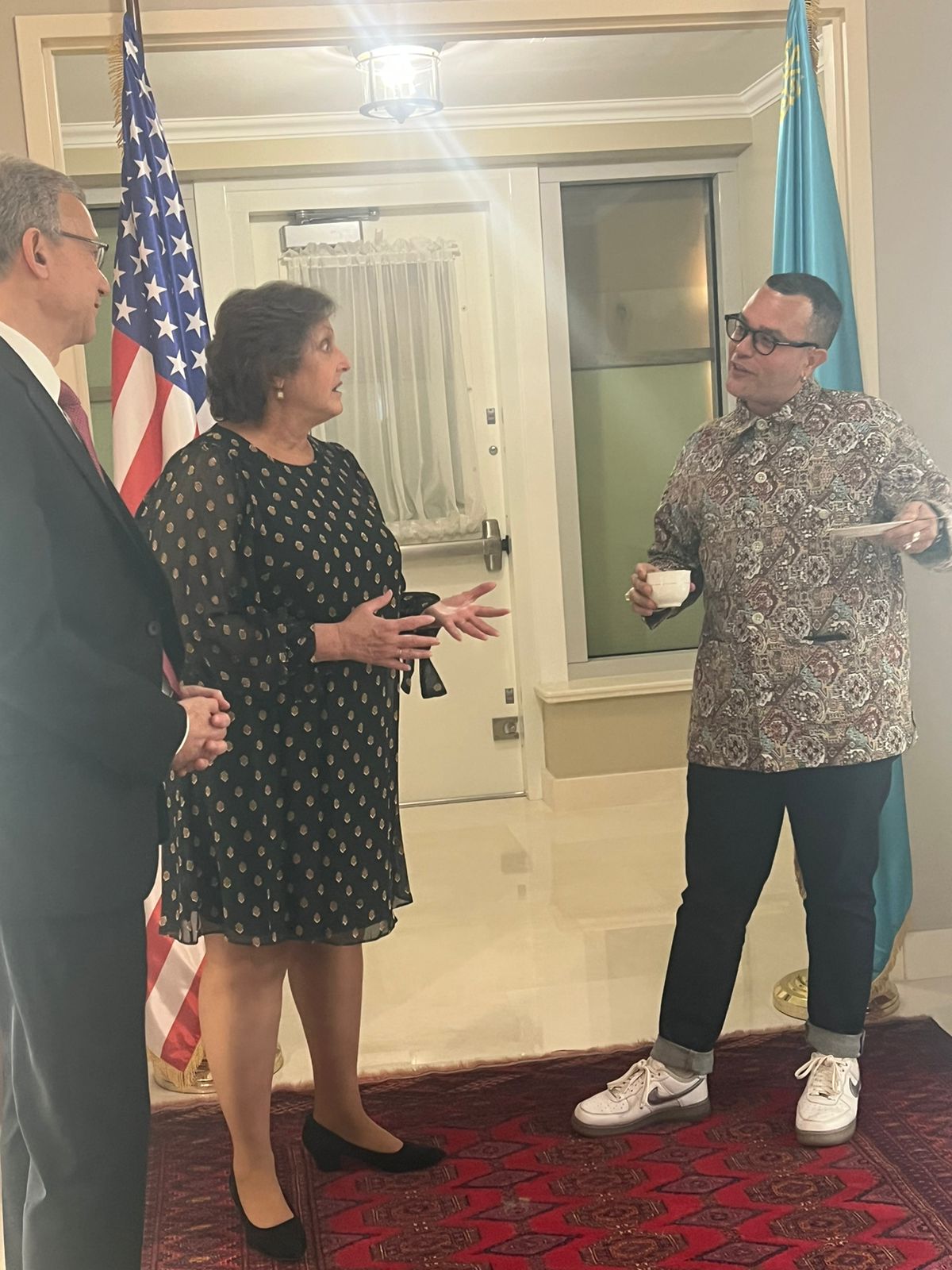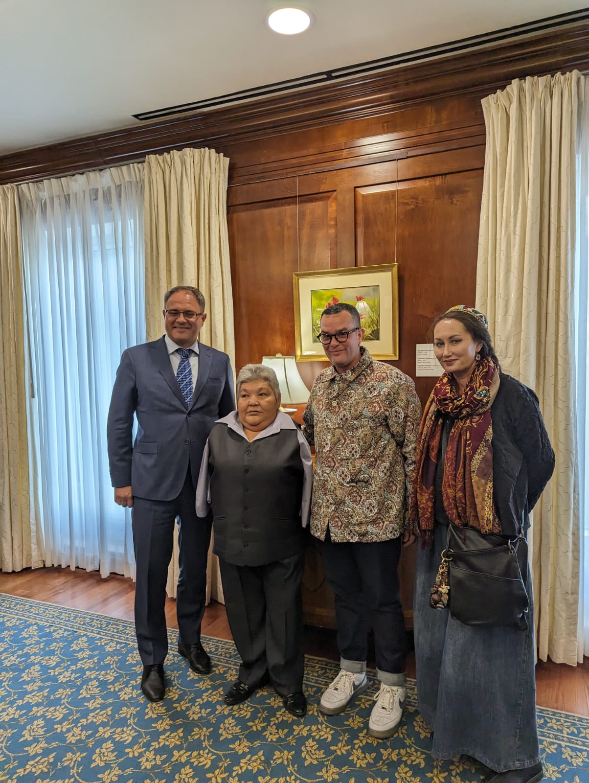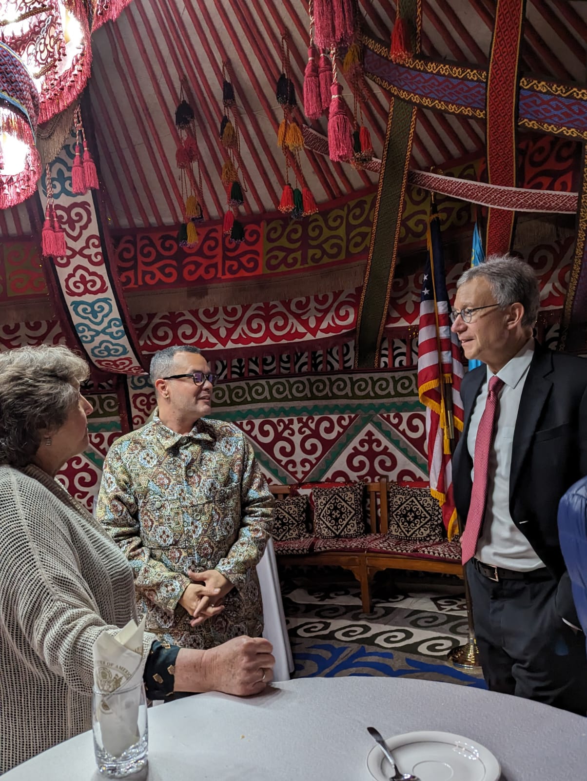 The Art in Embassies program’s curator of the Astana embassy, Tori See, has been instrumental in curating diverse and thought-provoking exhibitions that stimulate discourse and cultural exchange. Her meticulous approach in selecting artworks incorporating indigenous techniques and contemporary perspectives has been pivotal in engaging local audiences and promoting cross-cultural understanding. Additionally, registrar Ashlee Forbes’s dedication to facilitating collaborations among international and local artists has fostered a dynamic environment for artistic expression, promoting the program’s goals of fostering cultural diplomacy.
