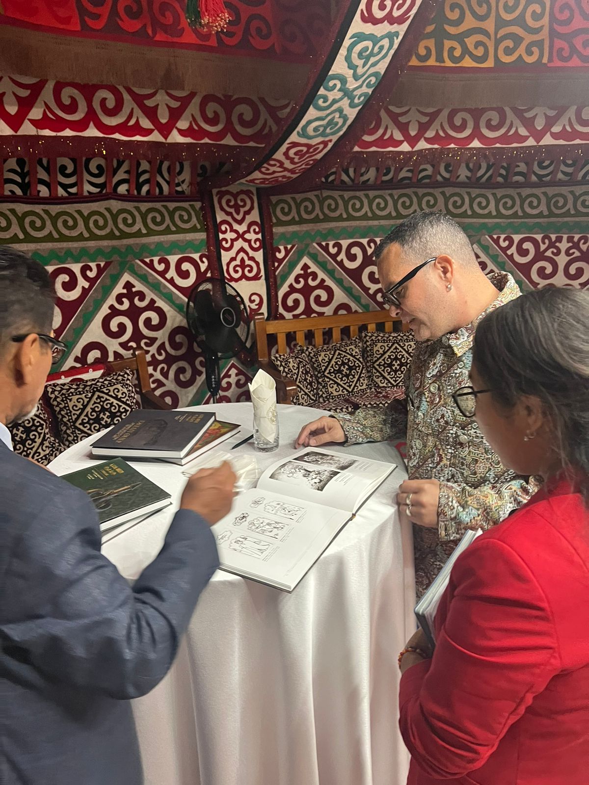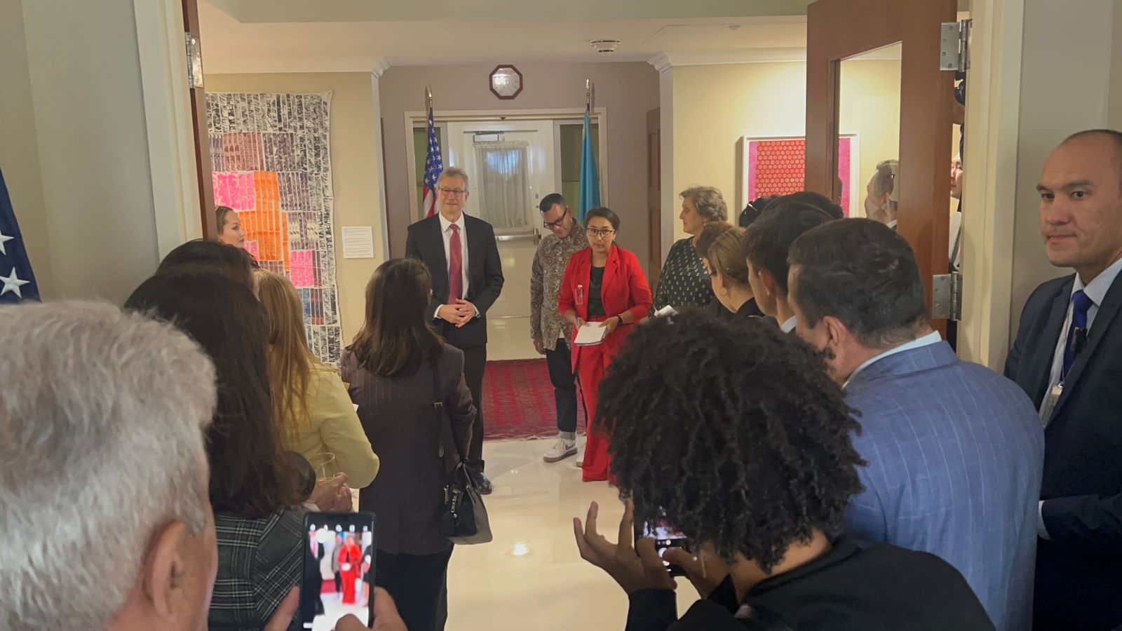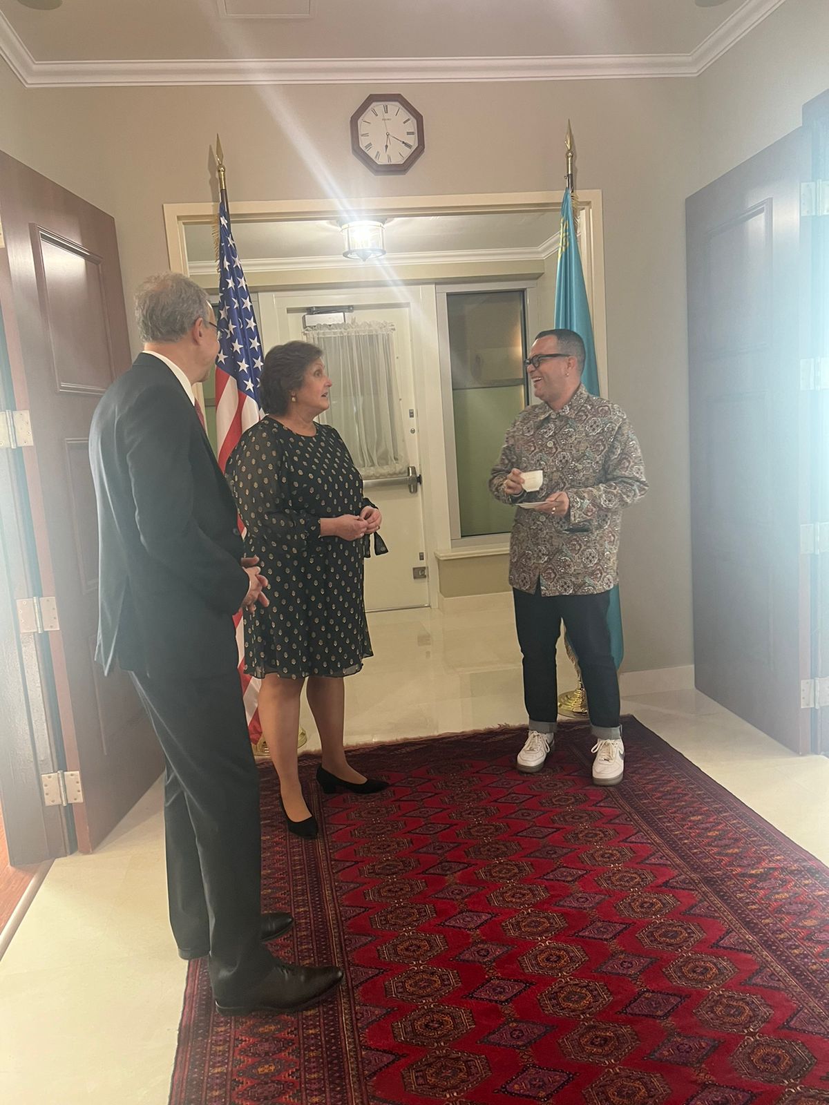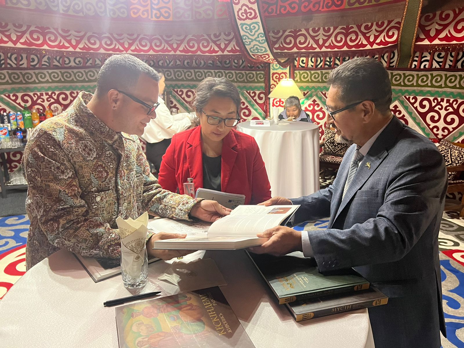 The Art in Embassies program’s curator of the Astana embassy, Tori See, has been instrumental in curating diverse and thought-provoking exhibitions that stimulate discourse and cultural exchange. Her meticulous approach in selecting artworks incorporating indigenous techniques and contemporary perspectives has been pivotal in engaging local audiences and promoting cross-cultural understanding. Additionally, registrar Ashlee Forbes’s dedication to facilitating collaborations among international and local artists has fostered a dynamic environment for artistic expression, promoting the program’s goals of fostering cultural diplomacy.