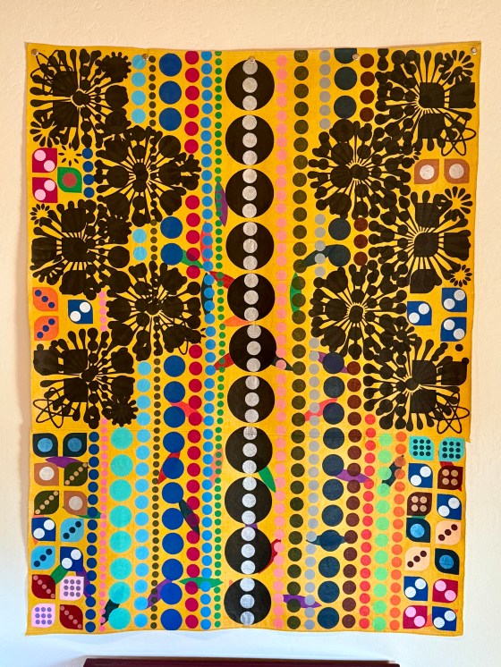 4 feet x 5 feet | Acrylic, ink, and steel grommets on canvas