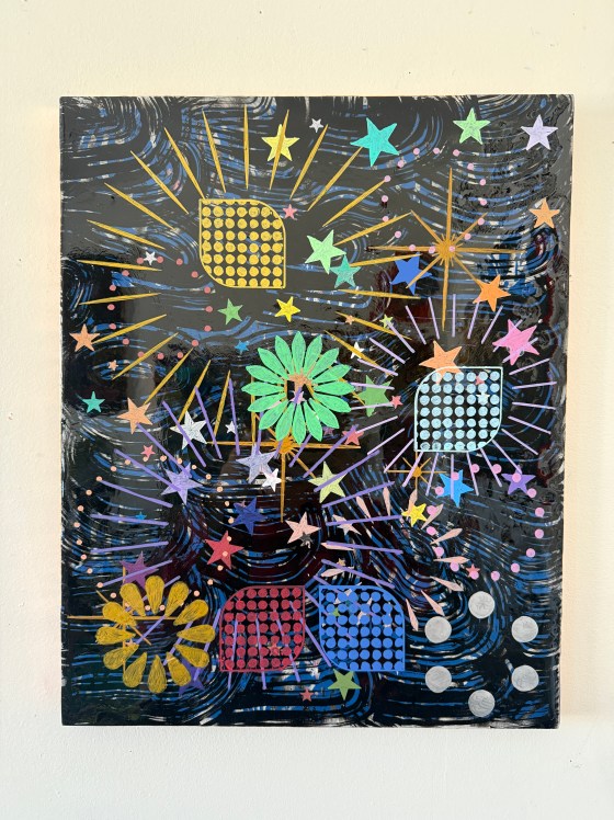 This painting is named after Pachyman’s track, “Sale el Sol,” or “the sun rises,” and it’s all about emergence, radiance, and … More
